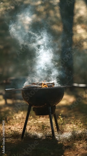 Smoke and fire engulfing a barbecue, creating a dramatic scene