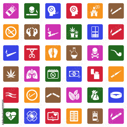 Smoking Icons. White Flat Design In Square. Vector Illustration.