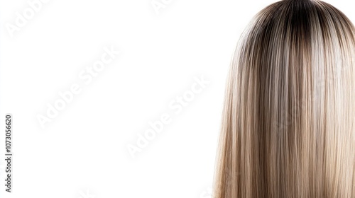 Smooth and Shiny Long Hair with Highlights Showcasing Natural Texture and Beauty on a Light Background for Haircare and Fashion Concepts
