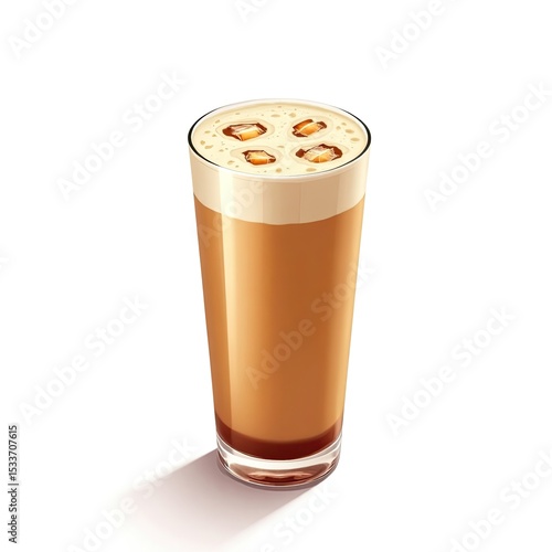 Smooth Iced Latte with Frothy Top and Ice Cubes