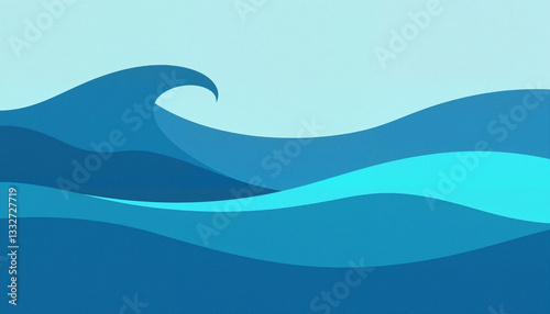 Smooth ocean waves in deep blue and turquoise hues, serene tranquility