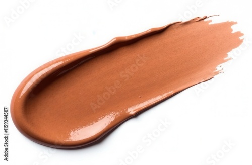 Smooth smear of beige makeup foundation on a white background, showcasing a creamy texture. Color of the year 2025 - Mocha Mousse.