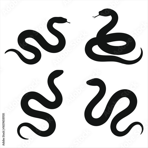 Snake Silhouettes Collection – Black Serpent Vector Icons Set