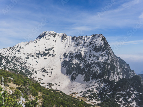 Snow covered mountain in the italian alps on a sunny winter day