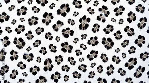 Snow Leopard Fur Seamless Pattern with Monochrome Texture