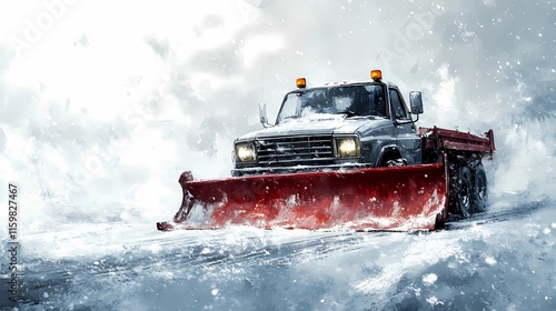 Snow-clearing vehicle pushing snow off the streets, ensuring clear routes for drivers, depicted in a clean and minimal illustration style