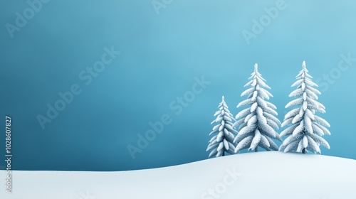 Snow-covered pine trees against a blue winter sky, capturing the essence of a peaceful holiday season