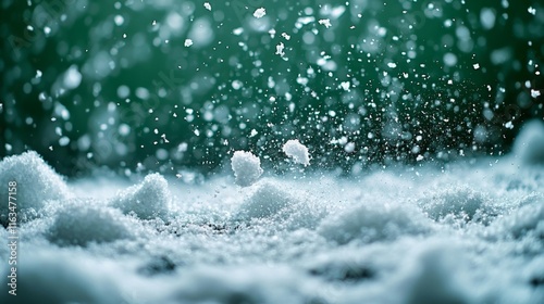 Snowfall Effect on Green Background. Generative AI