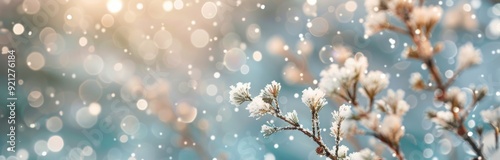 Snowfall Over Evergreen Branches in a Winter Landscape at Sunset