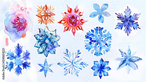 Snowflakes christmas watercolor painting