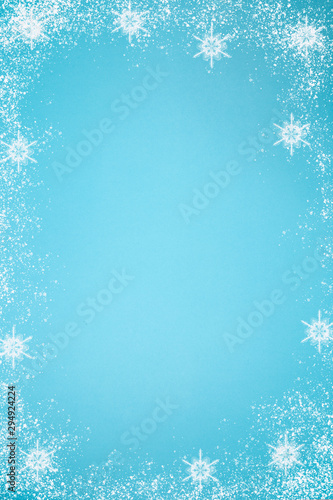 snowflakes on blue background.
