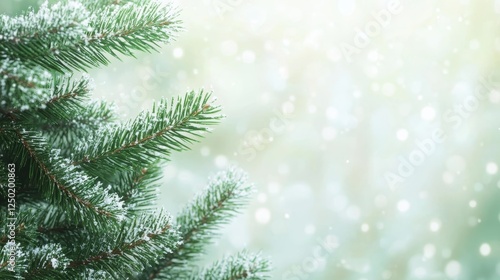 Snowy Evergreen Branches with Bokeh Lights A Festive Christmas and Winter Background