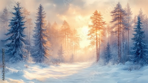Snowy Forest at Sunrise