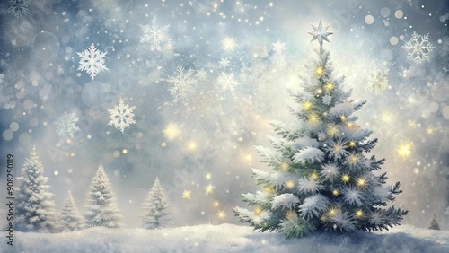 Snowy Watercolor Christmas Tree on a Silver Background - Wintery Holiday Magic AI Generated