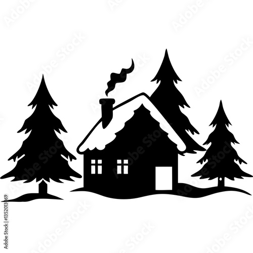 Snowy Winter Cabin Among Pine Trees Vector Illustration for Home Decor and Crafts