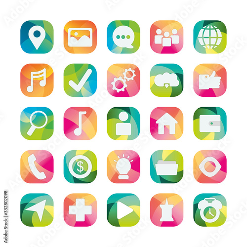 Social media and apps block flat style icon vector design