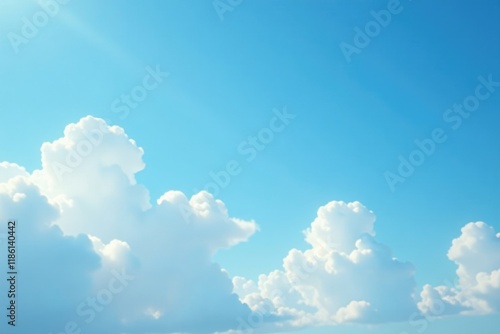 Soft blue sky with white fluffy clouds scattered, clouds, soft focus