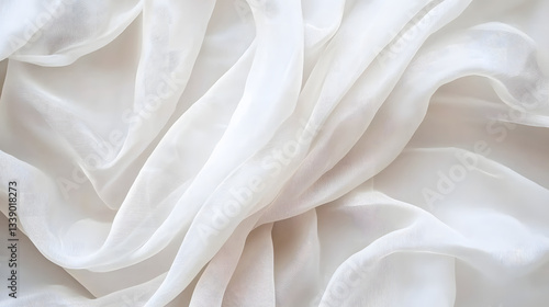Soft Fabric Drapery: a close-up of delicate white fabric, expertly draped and arranged, creating elegant folds and shadows, evoking a sense of luxury and ethereal beauty.