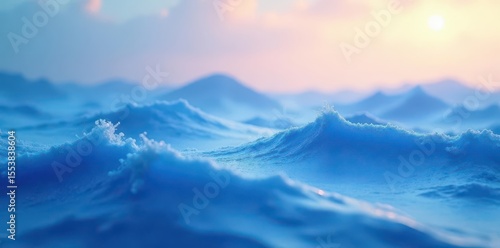 Soft gradient blue waves gently merge with an ethereal atmosphere , misty, abstract