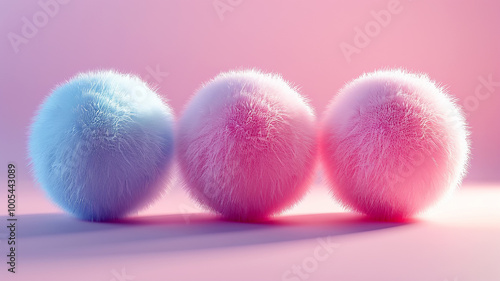 Soft pastel spheres in blue and pink hues create a dreamy, whimsical atmosphere