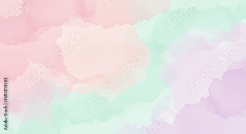 Soft pastel watercolor background with pink, mint green, and lavender hues, abstract paint splashes and blended textures, gentle and dreamy artistic backdrop