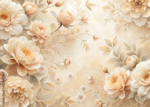 Soft Peach Floral Pattern, Cream Background Abstract Flower Design, Elegant Botanical Texture