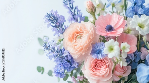 Soft Pink and Lavender Flower Arrangement with Dusty Mint Hues and Textured Background