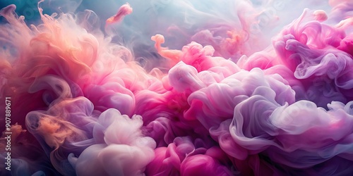 Soft, whimsical pink and magenta hues swirl in a defocused, abstract background, evoking a sense of silky smoke and dreamy, fantastical clouds in gentle, flowing motion.
