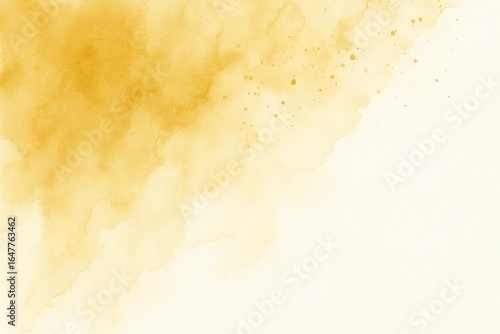 Soft yellow watercolor splash with scattered droplets on a cream background image