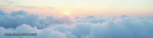 Softly glowing clouds amidst misty morning landscape, pearl white, pale blue