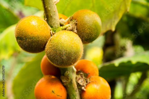 Solanum quitoense fruit on the tree - Lulo organic fruit