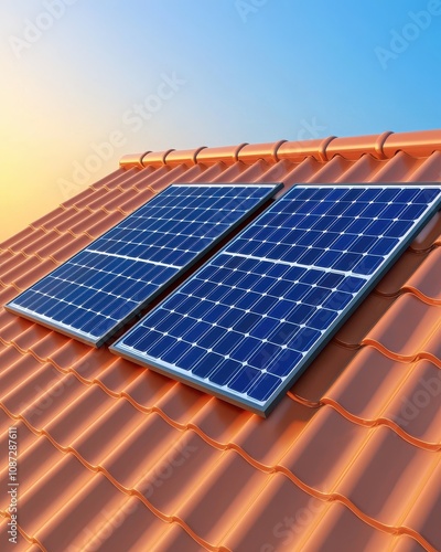 Solar panels installed on a terracotta roof under a clear blue sky, symbolizing renewable energy and sustainability.