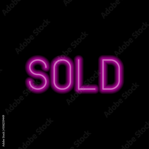 Sold simple icon vector. Flat design. Purple neon style on black background.ai