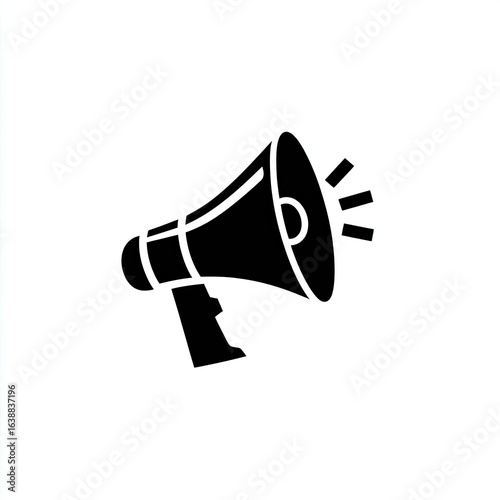 Solid black megaphone icon, radiating outwards