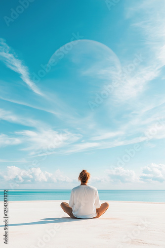 Solitary mindfulness practice with ocean and clouds in the background