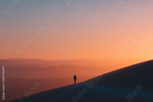 solitary traveler stands on sunlit path surrounded by warmth of golden-hour landscape people in distance softly blurred