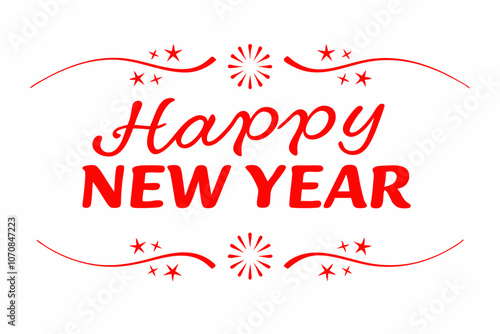 Some elements of "Happy New Year" lettering are fireworks