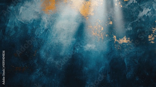 Soothing abstract background with calming blue hues and gentle light rays illuminating a textured wall, creating a tranquil atmosphere.