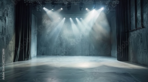 Sophisticated gray stage setting, offering a versatile backdrop for vibrant performances and artistic expression