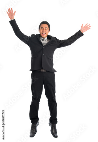 Southeast Asian businessman jumping
