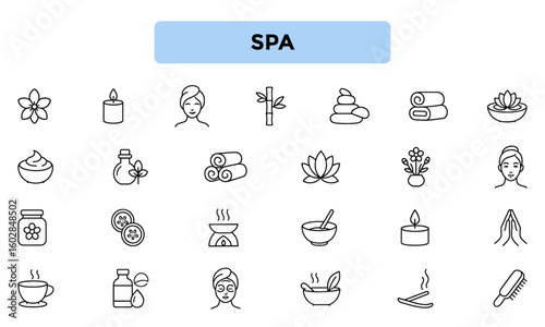 Spa Line Icons Pack – Vector Icons for Wellness, Relaxation, Massage, Aromatherapy, and Beauty Design Projects