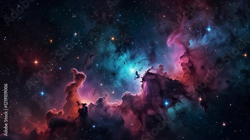 Space background with realistic nebula and shining stars. Colorful cosmos with stardust and milky way. Magic color galaxy. Infinite universe and starry night