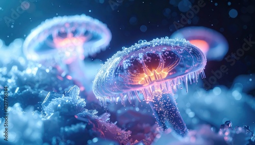 Space Biosignature Detection: Alien microorganisms glowing in deep space ice crystals
