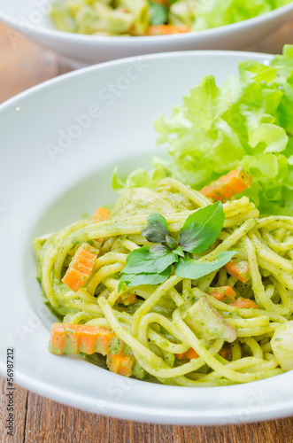 Spaghetti pesto sauce