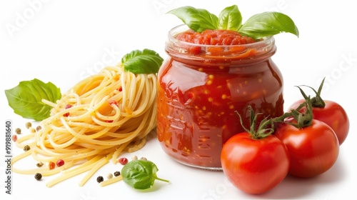 Spaghetti Sauce in Jar on White Background. Delicious Tomato-Based Pasta Ingredient