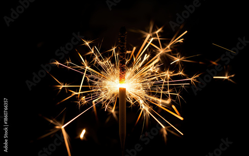 Sparkler fireworks close up on dark background. New Year celebration concept.