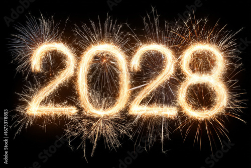 Sparklers forming the number 2028 against a black background a New Year celebration image
