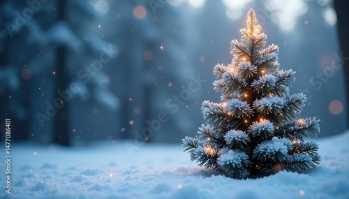Sparkling conifer tree covered in glittering frost, winter wonderland scene , forest, conifer