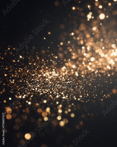 Sparkling golden particles create a mesmerizing effect