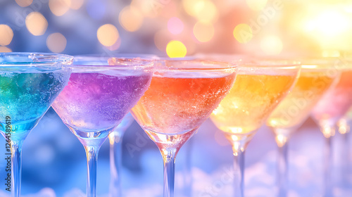 Sparkling Rainbow Cocktail Celebration of Joyful Colorful Alcoholic Beverages Event Drink
